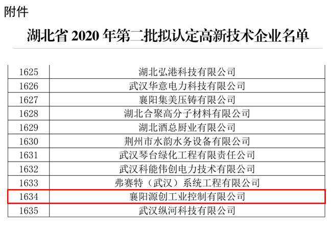 近日,科技部火炬中心公布了2020年湖北省第二批擬認定國家級高新技術企業名單,共2199家企業通過了國家高新技術企業的認定,其中襄陽源創工業控制有限公司榜上有名。