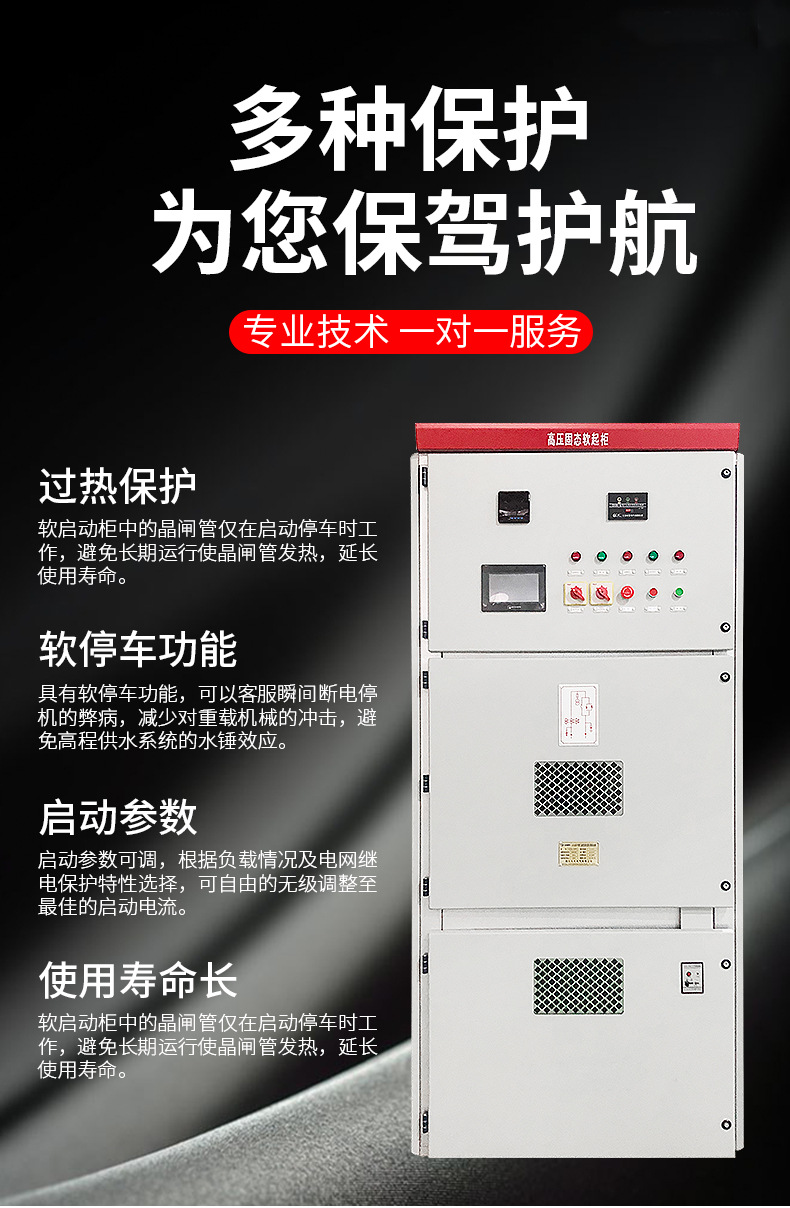 YHGQ系列高壓電機固態(tài)啟動柜是采用微處理器進行集中控制,配以高速可靠的光纖驅(qū)動和多種動、靜態(tài)均壓保護措施,實現(xiàn)設(shè)備的高性能運行,可以降低電機的啟動沖擊電流,減......